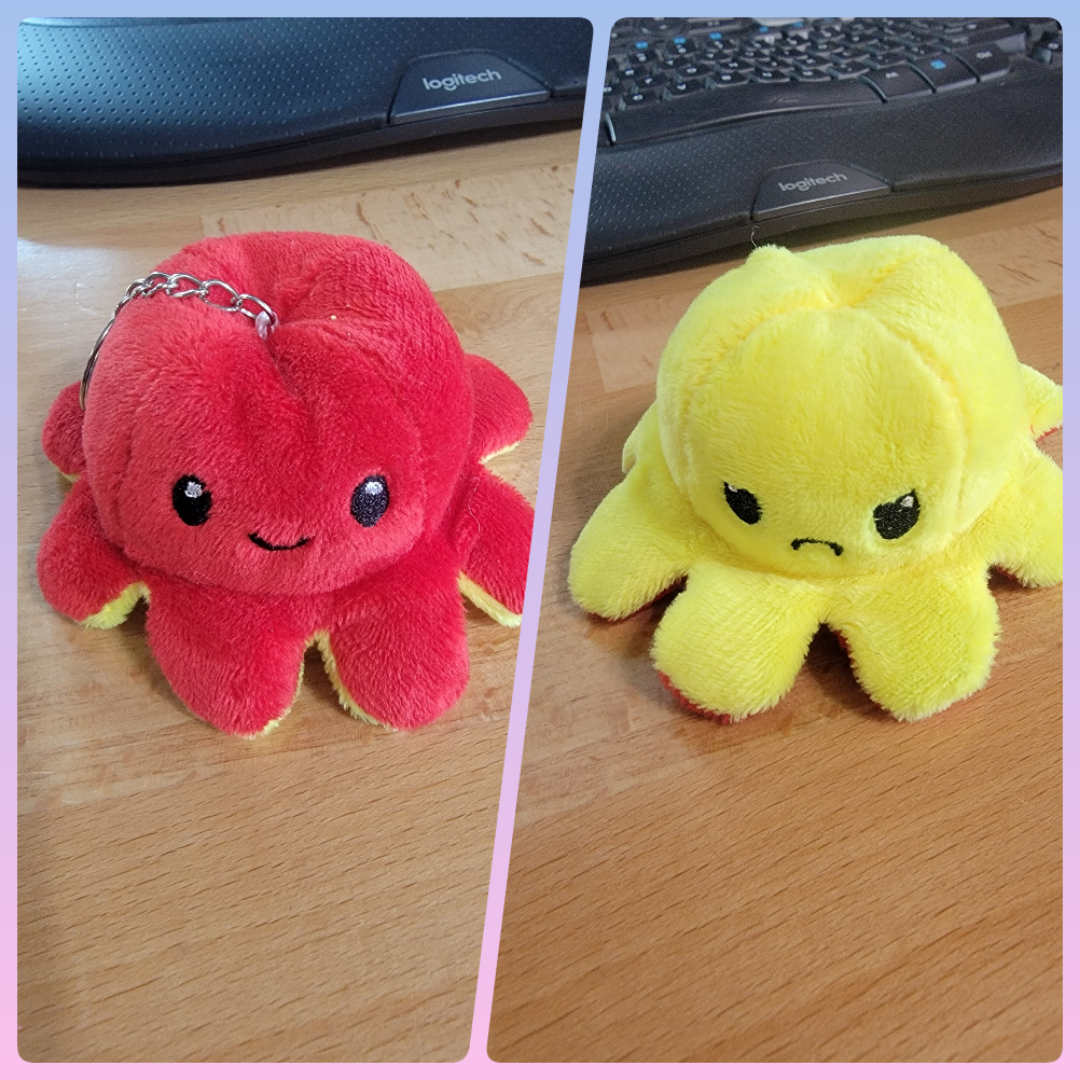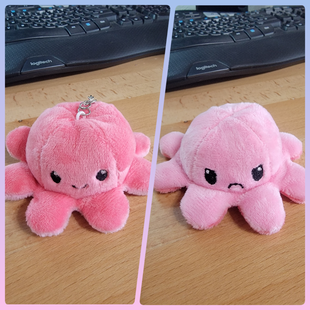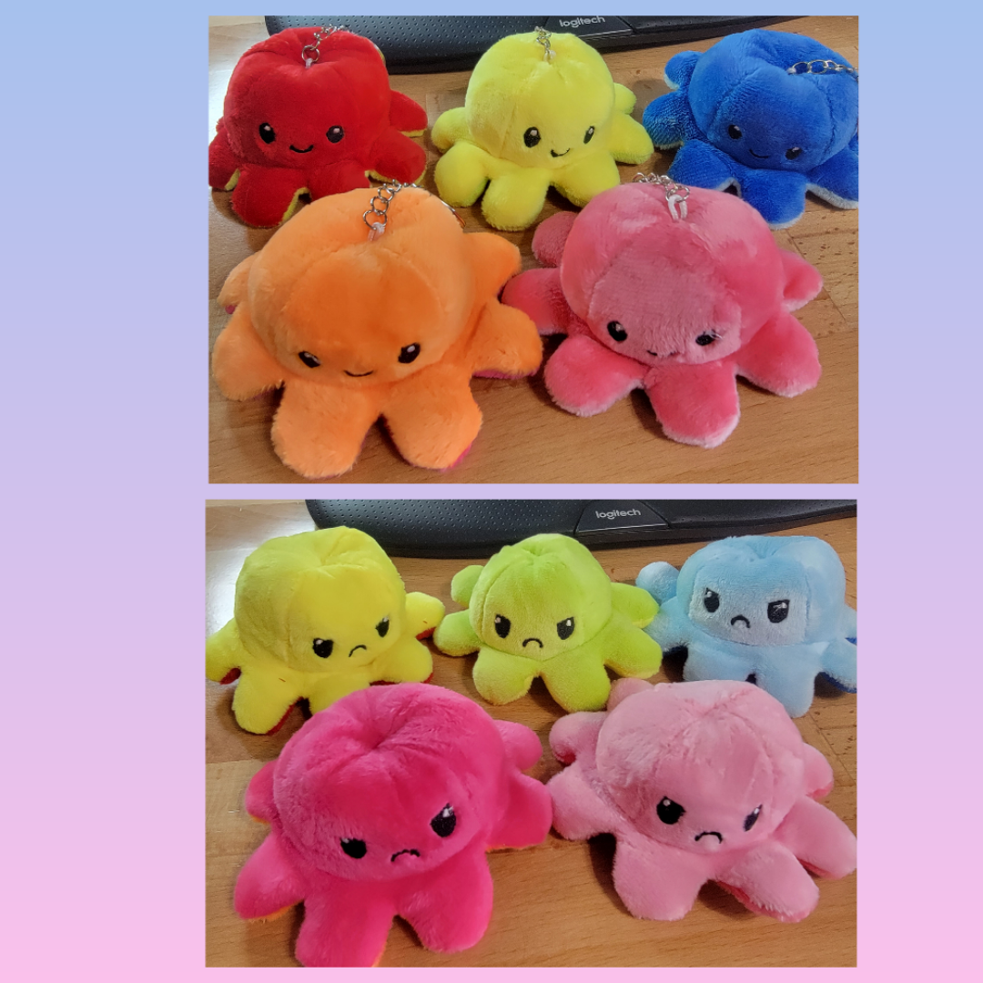 Ready to ship plush octopus keychains. These turn inside out to be happy or sad. These are limited.