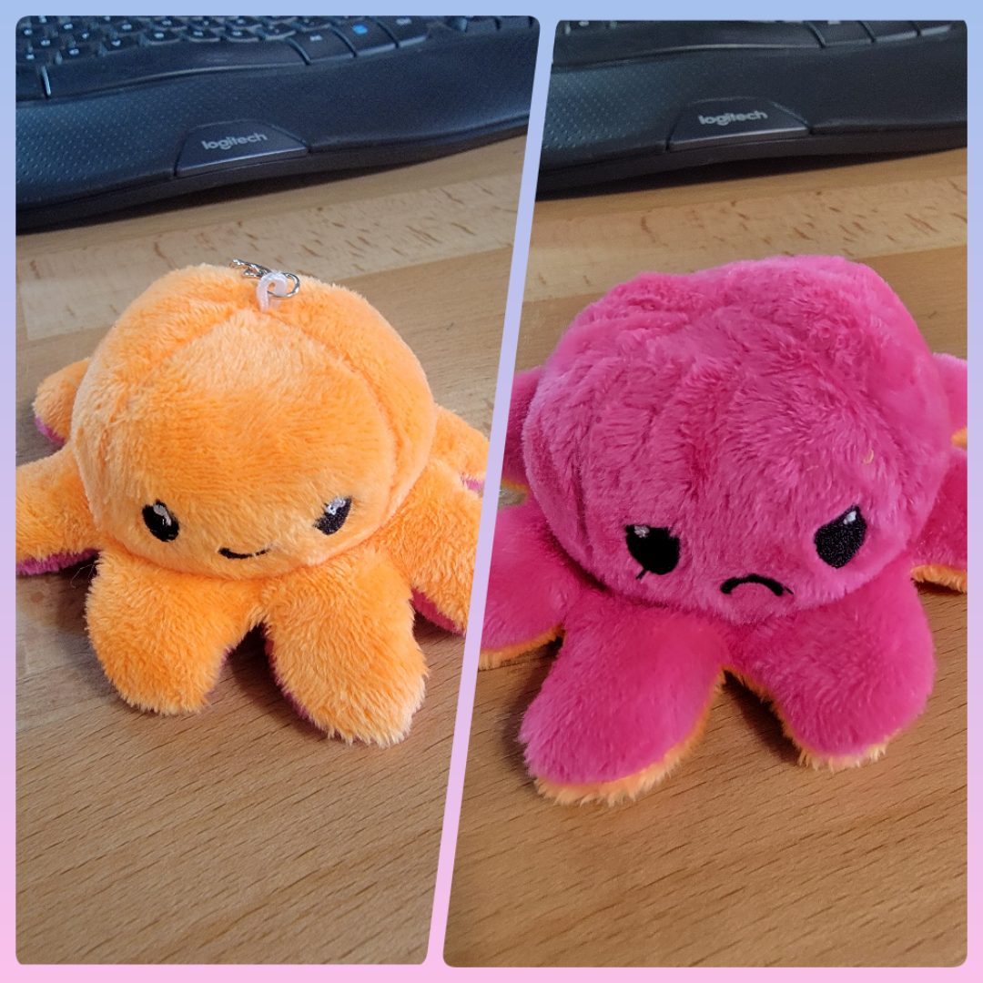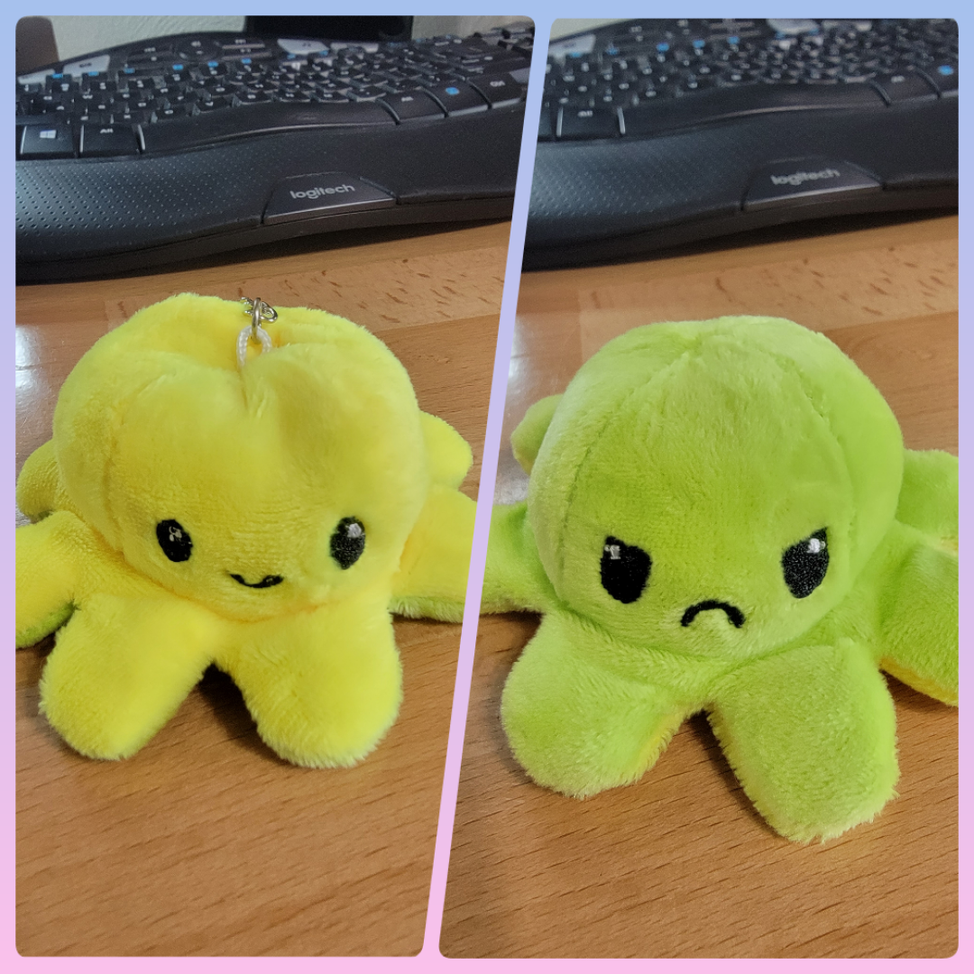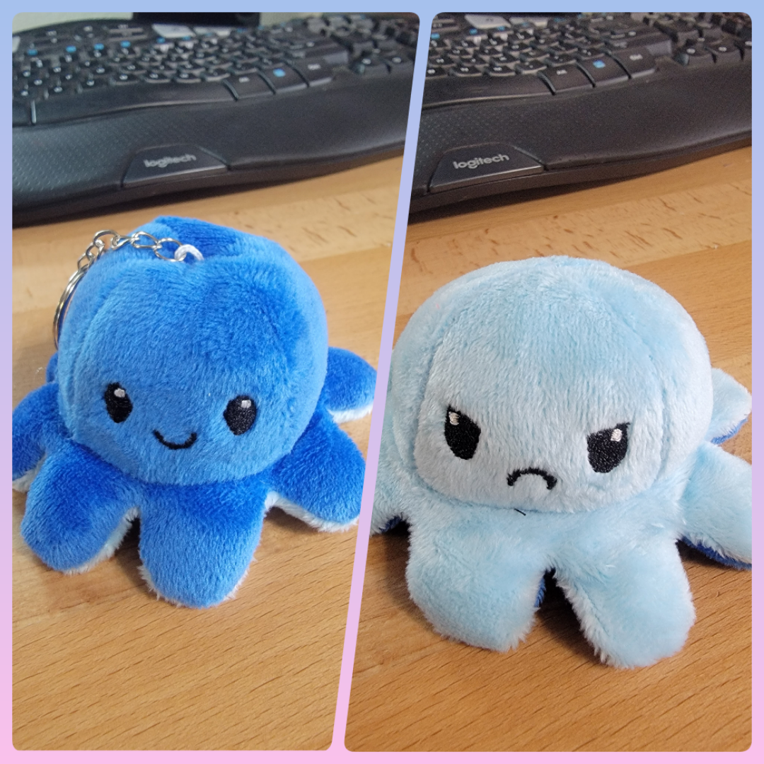 Ready to ship plush octopus keychains. These turn inside out to be happy or sad. These are limited.